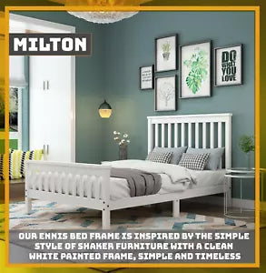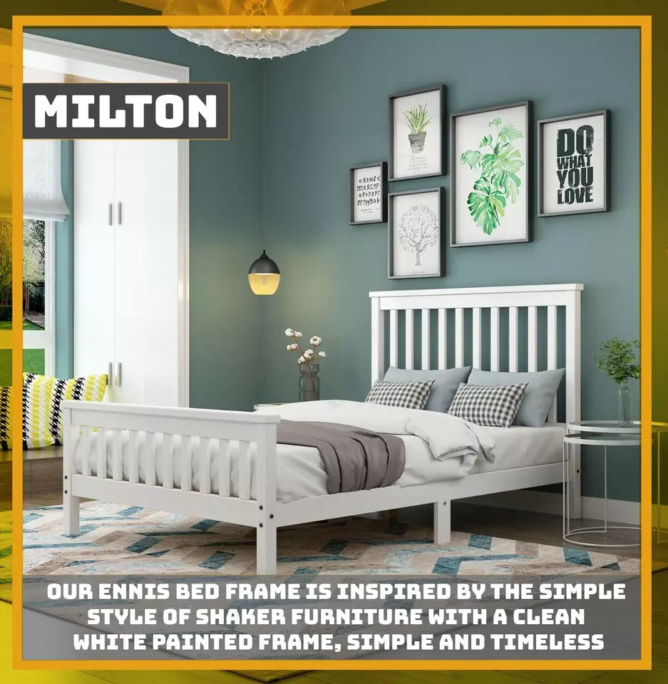 Introducing the Ennis Bed Frame – a harmonious blend of timeless elegance and contemporary design, tailored to provide you with a restful night's sleep. Crafted with meticulous attention to detail, this bed frame boasts a charming panel detail on both the head and foot ends, complemented by sturdy white wooden corner posts. Whether you're furnishing a cozy single bedroom or a spacious double, the Milton Bed Frame effortlessly brings traditional charm to any modern home.