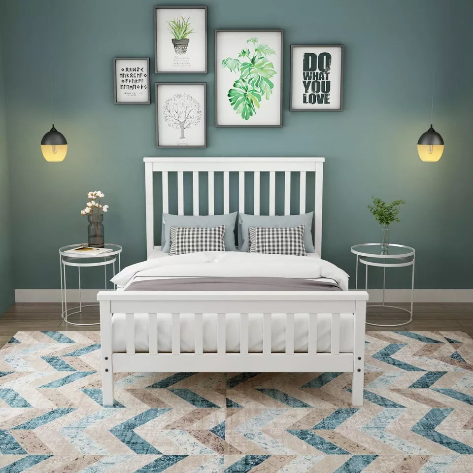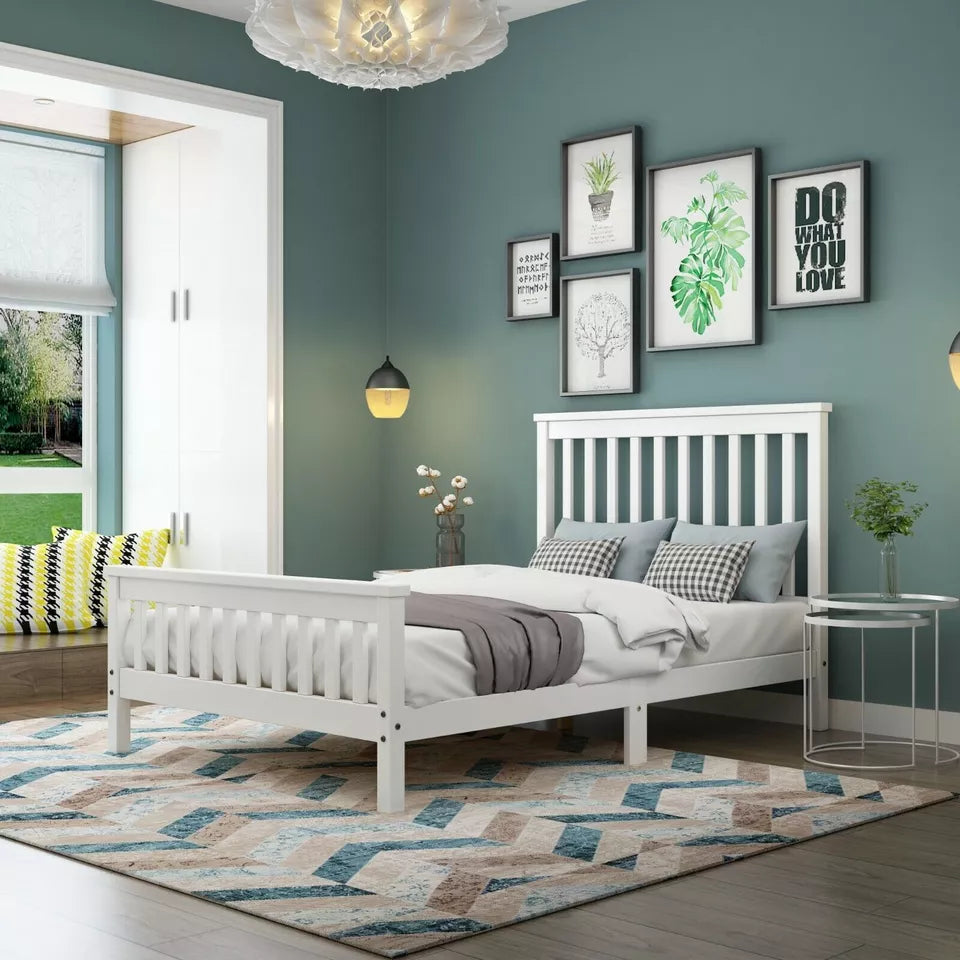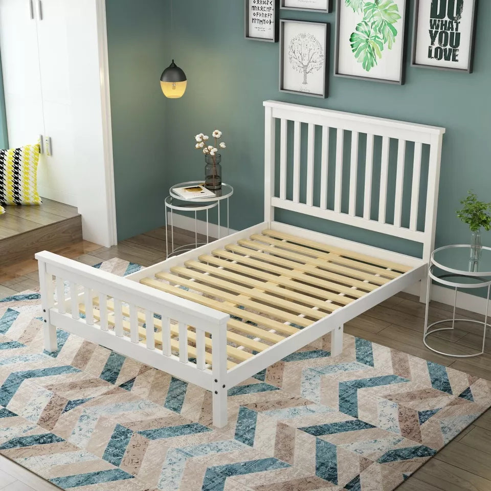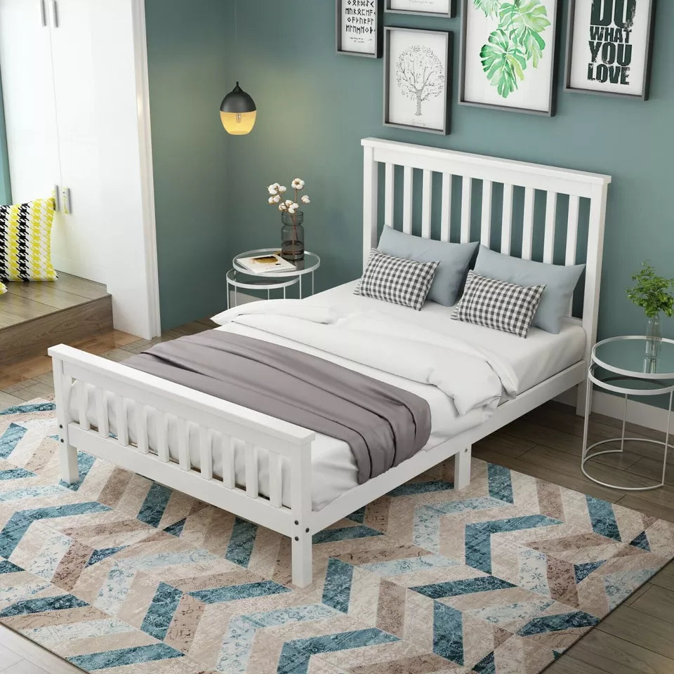 Double BED Panel Detail Country Style White Wooden SHAKER STYLE Posts Bed Frame