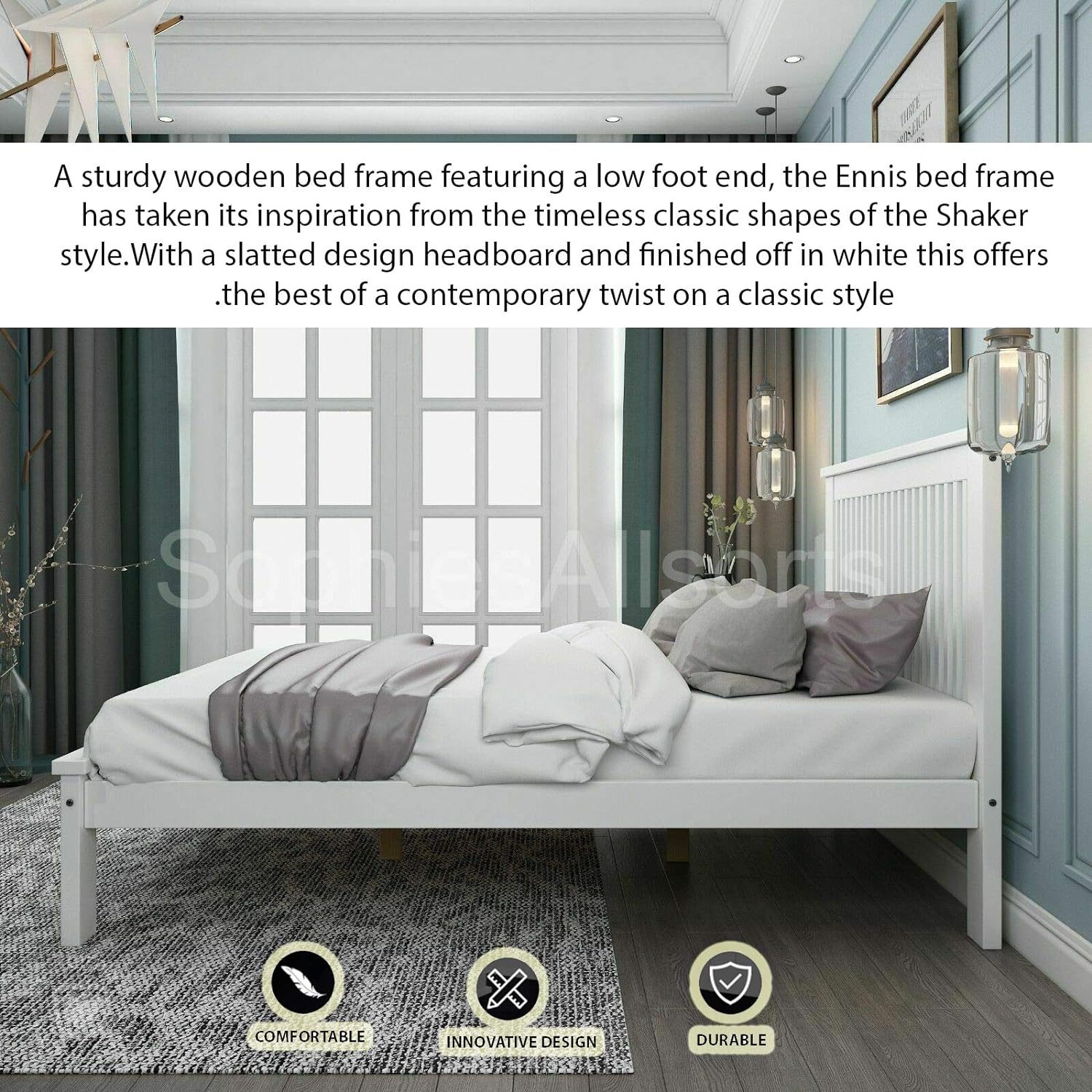 Our Ennis bed frame is inspired by the simple style of Shaker furniture with a clean white painted frame, Simple and Timeless.