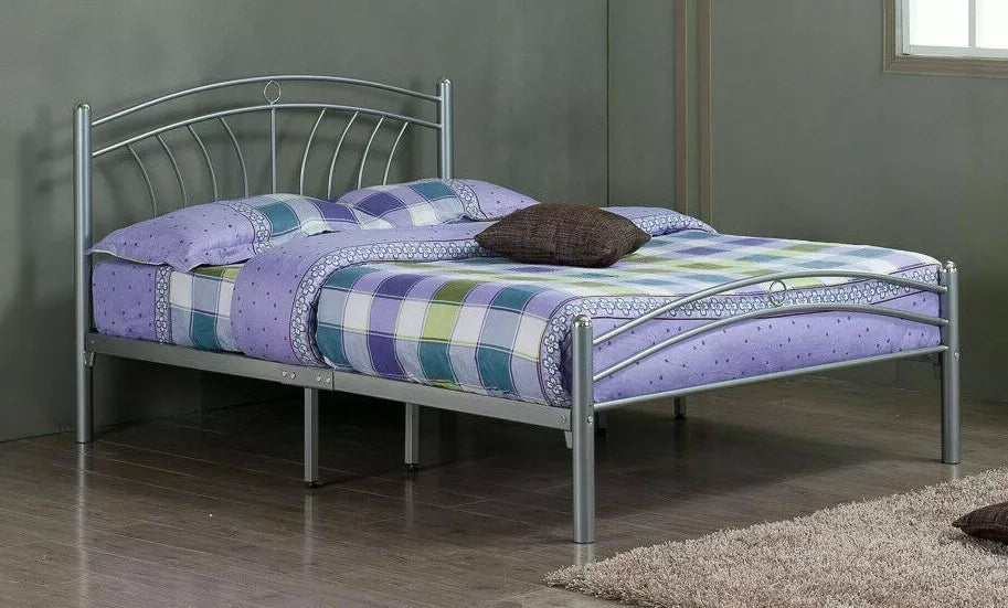 Metal Solid Bed Double 4ft-6inch Ava Dorset Silver Bedframe Bedroom Furniture