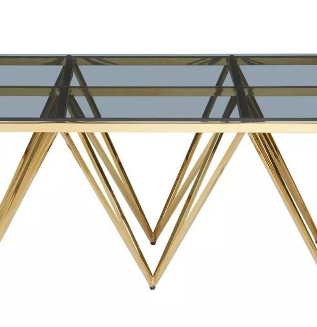 Modern Gold Colour Metal Spike Legs Black Smoked Glass Coffee Table Allure