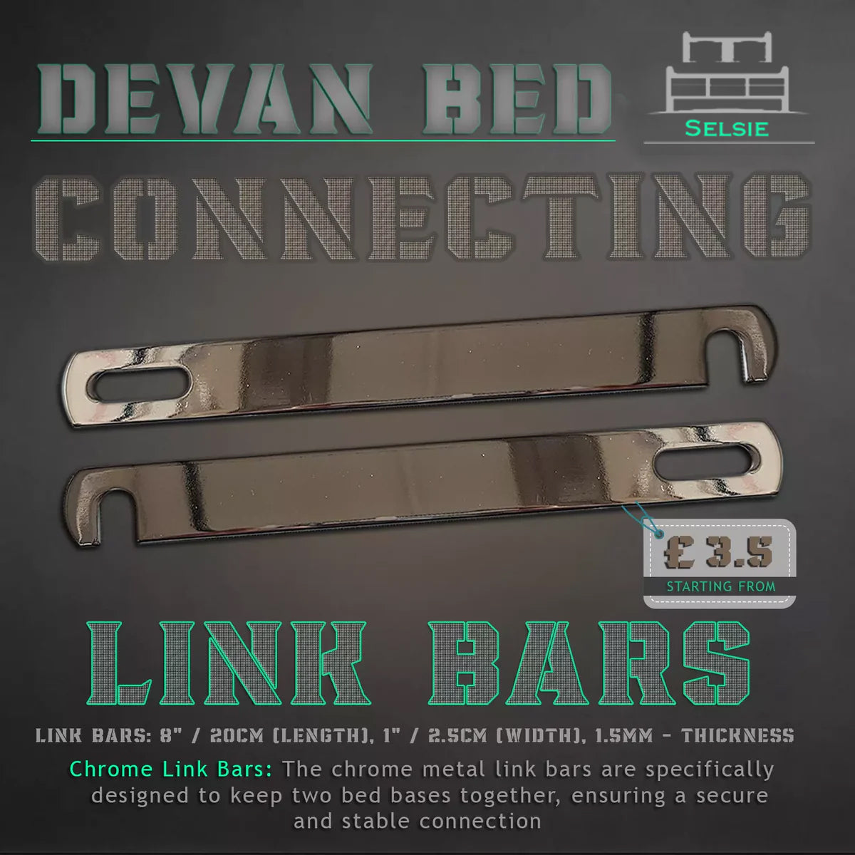 ***Securely Connect Divan Bed Bases with Chrome Metal Link Bars***
