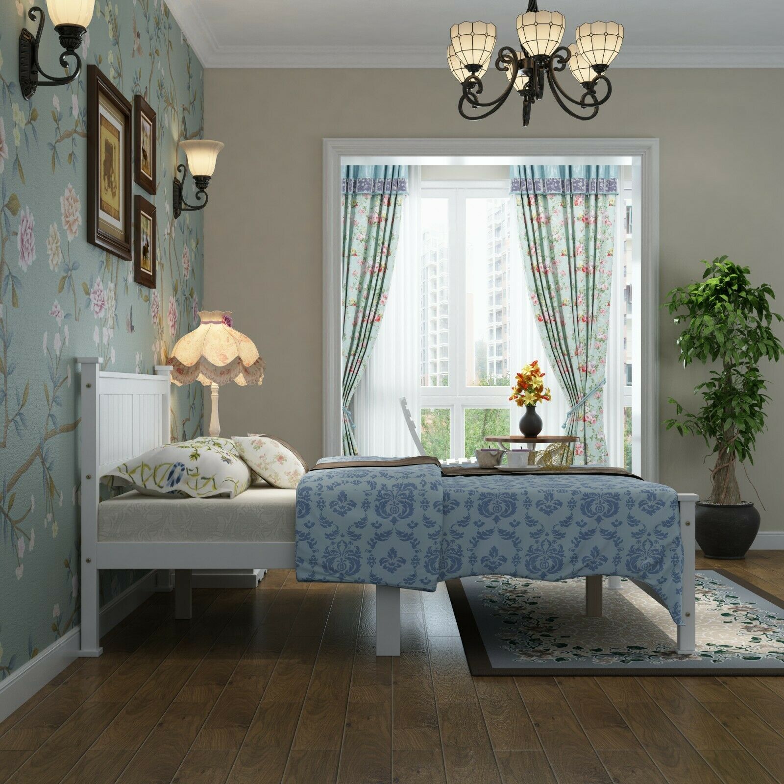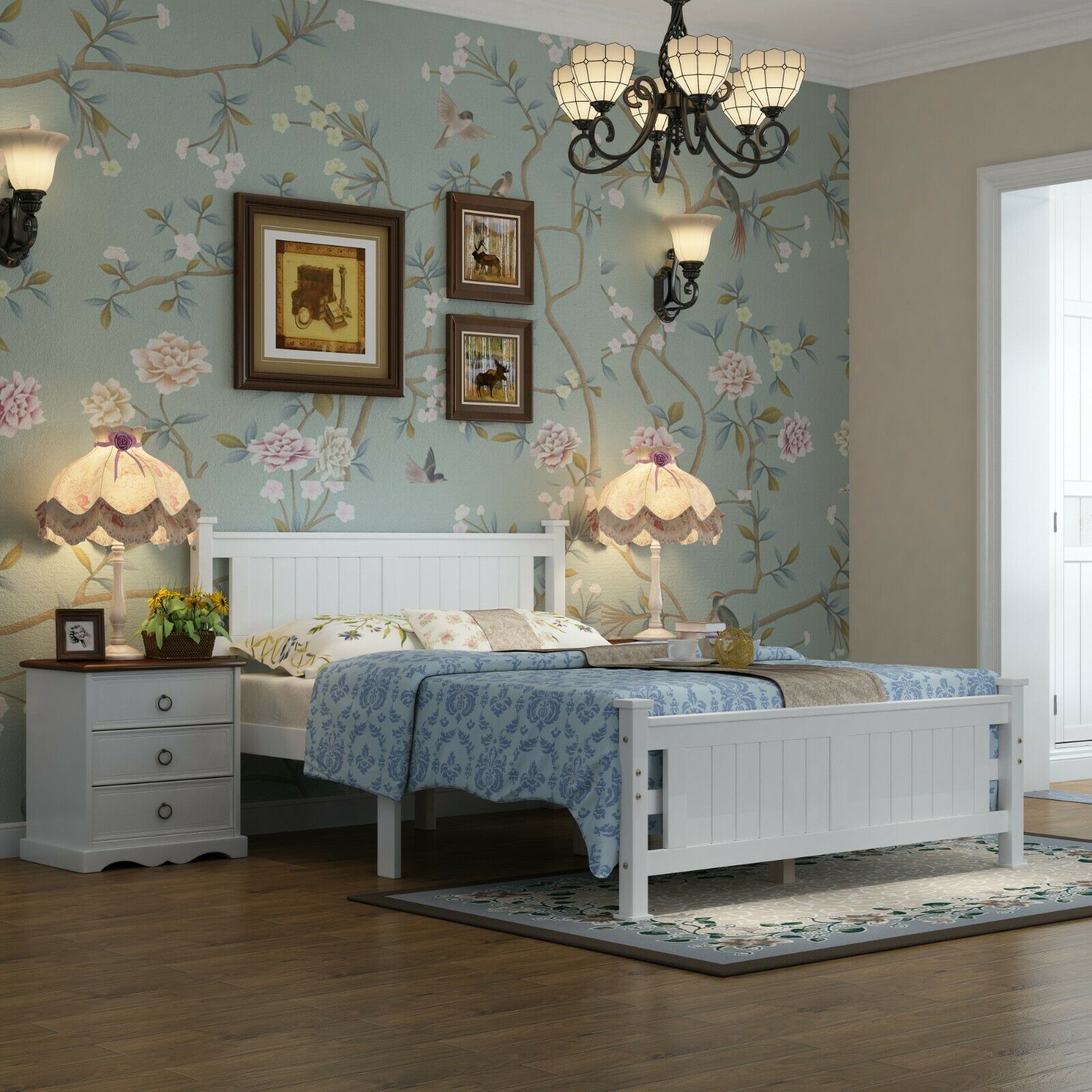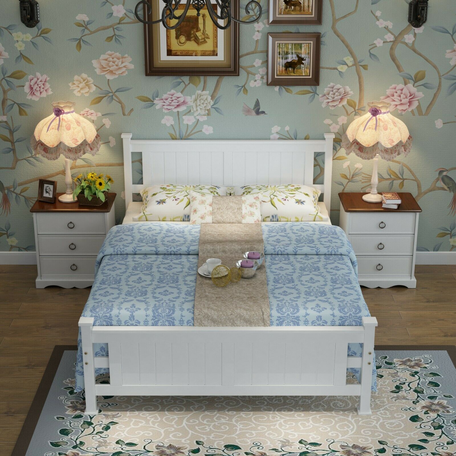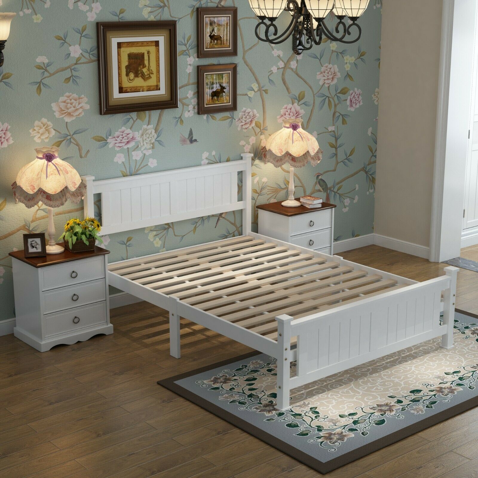 ***Panel Detail Country Style White Wooden Posts Bed Frame Double***